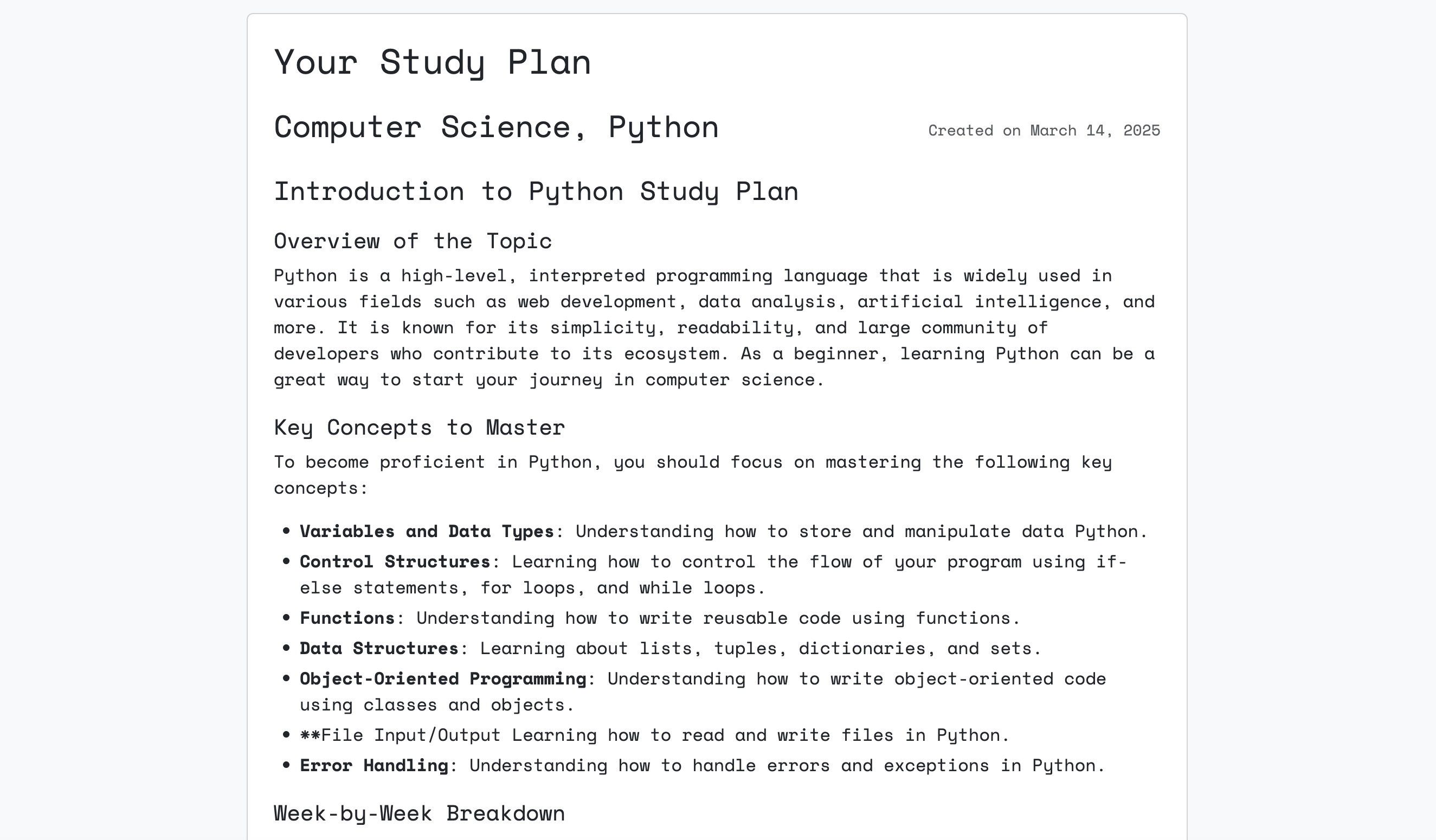 Generate custom study plans based on your learning history and goals for a structured path to success.